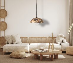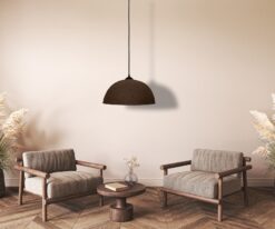 19″ Wabi Sabi Ceramic Pendant Light – Mid Century Modern Brown Dining Room Ceiling Fixture