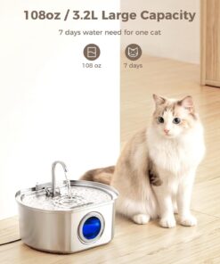 Stainless Steel Cat Water Fountain 108oz/3.2L – Automatic Pet Drinking Dispenser Bowl for Indoor Cats